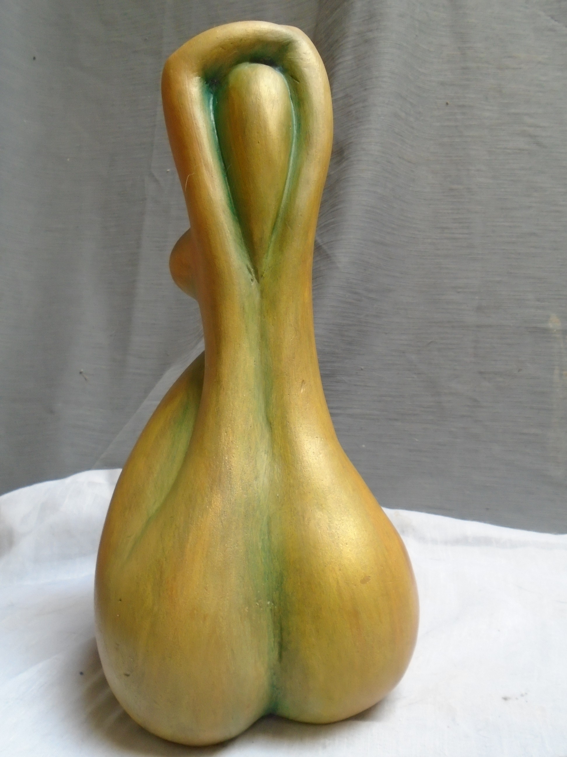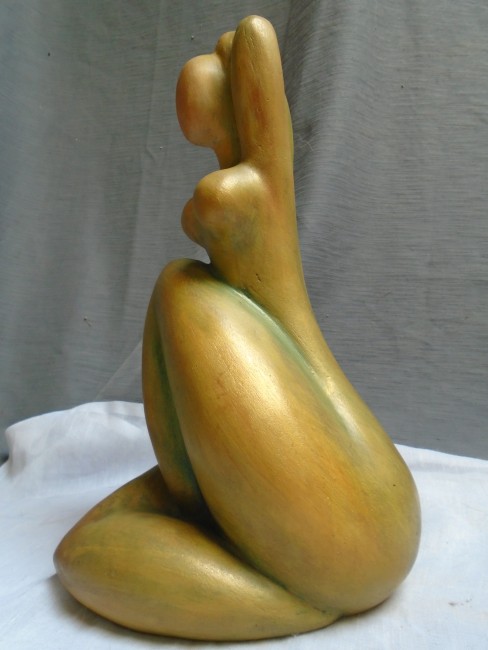 Sculpture en terre cuite patinée intitulée "Femme assise stylisée bras relevés" ,pièce unique signée certificat d'authenticité joint ,envoi très soigné en colissimo suivi.