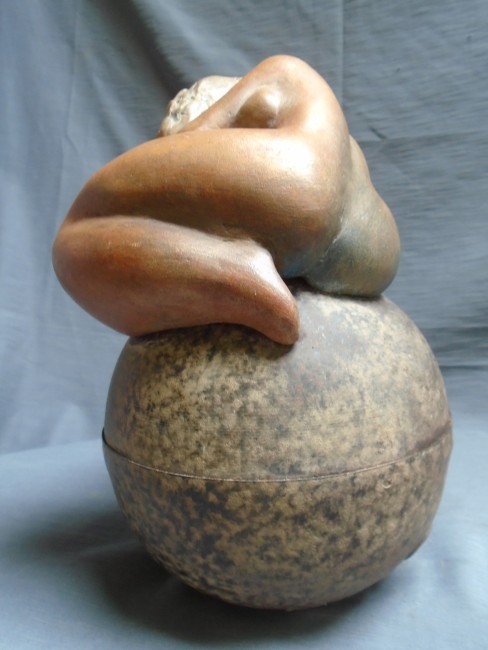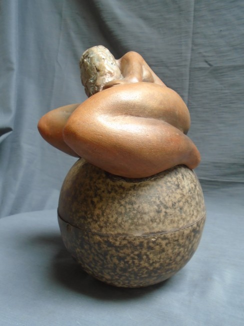 Sculpture d'une femme en repli sur sphère en métal ,pièce unique signée ,certificat d'authenticité joint ,emballage très soigné en colissimo suivi.