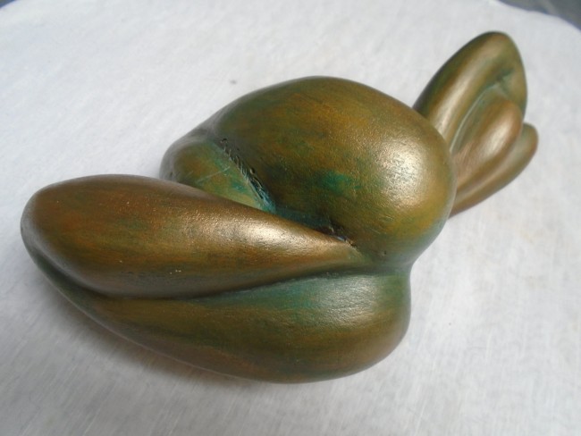 Sculptures terre cuite patinée ou recouverte de tissu façon patchwork et bronze ,pièce unique,symbolisant le corps féminin le couple