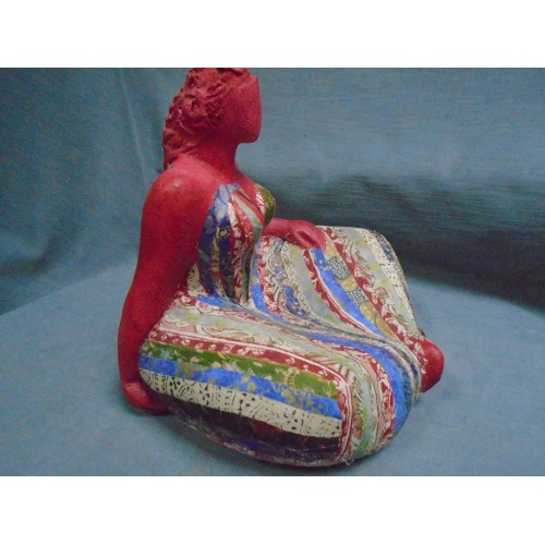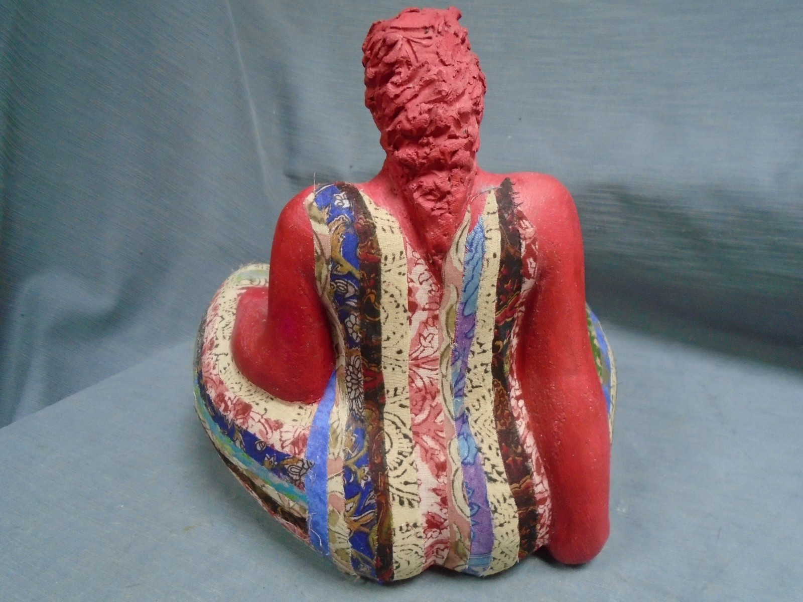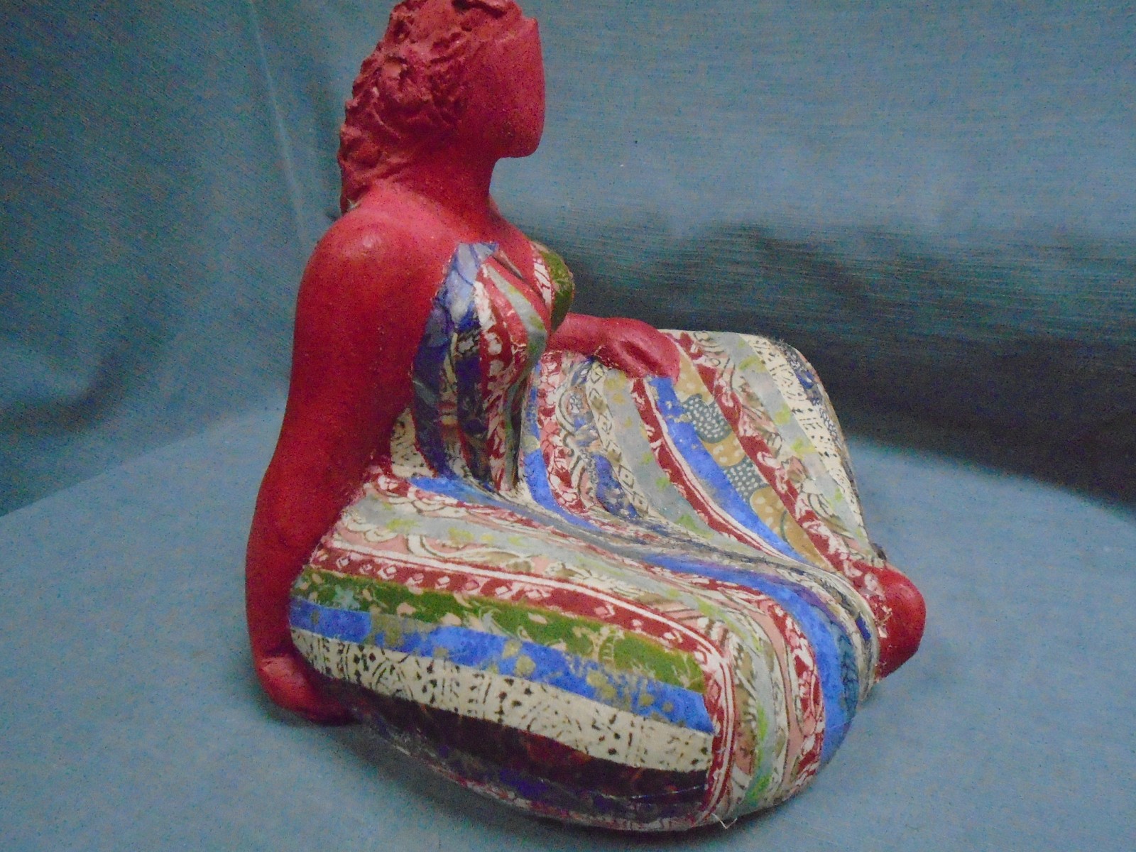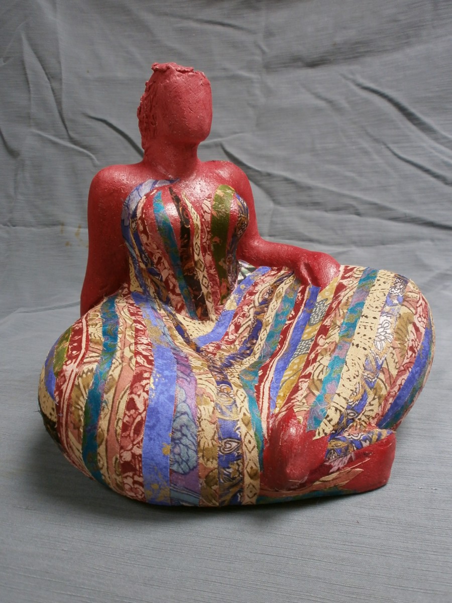 La Mama ,terre cuite patinée et tissu façon patchwork