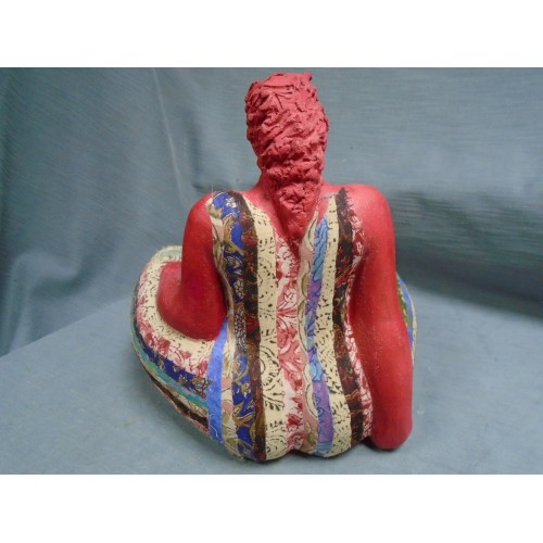 Sculpture en terre cuite patinée et recouverte de tissu façon patchwork intitulée "La Mama", pièce unique vendue avec son certificat d'authenticité, dimensions H : 22cm x L 21 cm, emballage soigné en colissimo suivi.