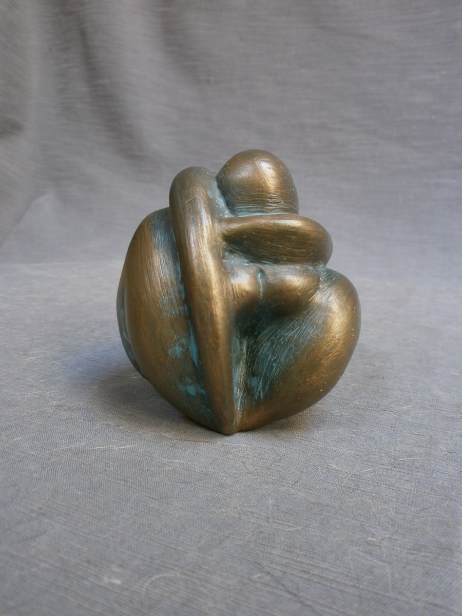 Sculptures terre cuite patinée ou recouverte de tissu façon patchwork et bronze ,pièce unique,symbolisant le corps féminin le couple