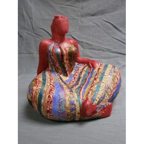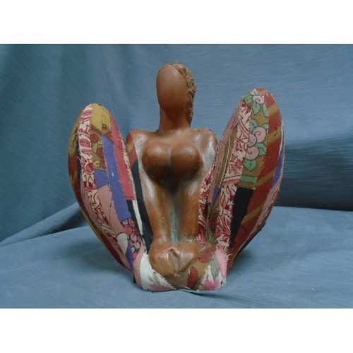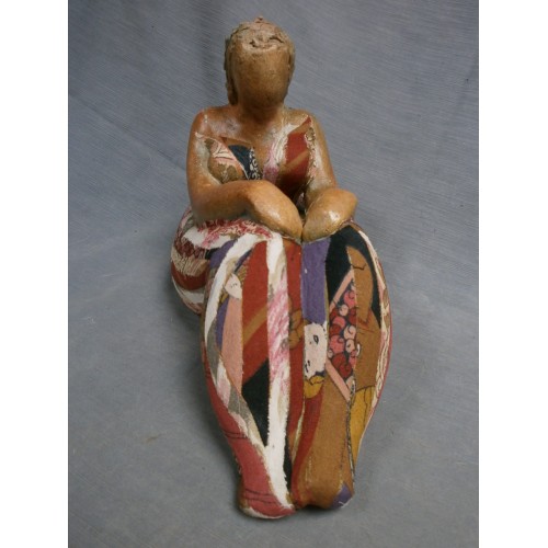 Sculptures terre cuite patinée ou recouverte de tissu façon patchwork et bronze ,pièce unique,symbolisant le corps féminin le couple